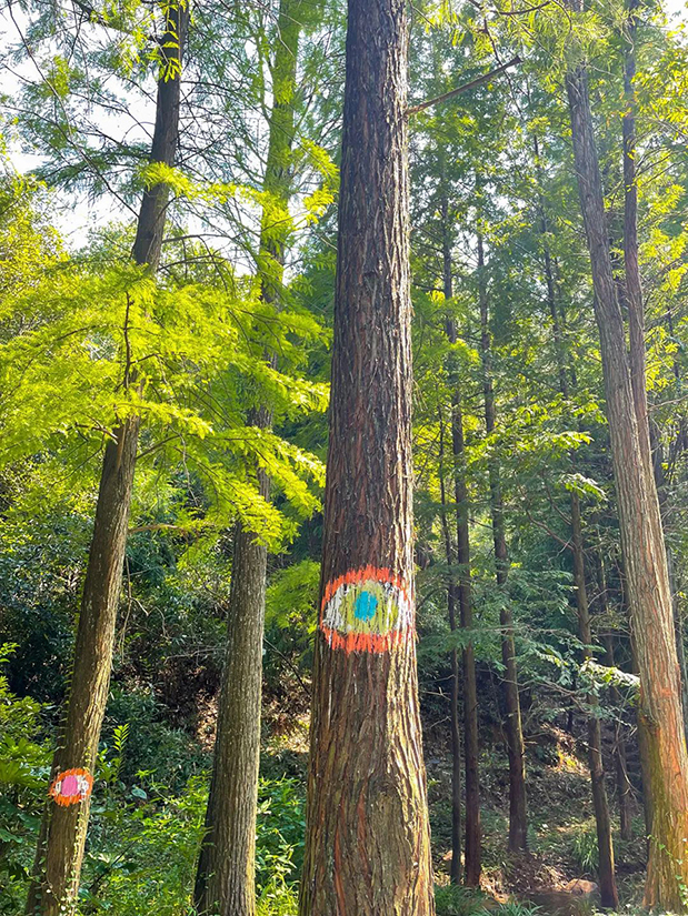 在樹木畫上一雙雙代表著心靈之窗的眼睛,通過以眼對視,感知、交流和