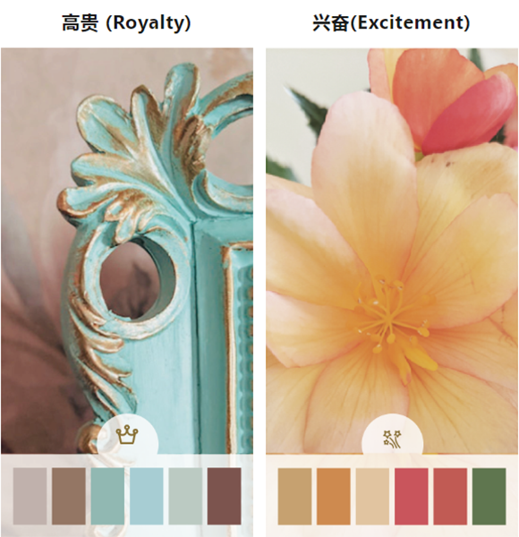 舒適(C)和興奮(E)帶暖色底的顏色則可作為點綴色 ,幫助激發靈感 ,賦予