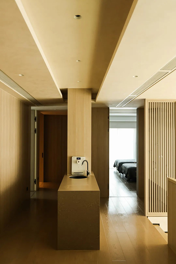 軟性材料中木飾面 , 以豐富的紋理增加溫暖感搭配墻面納帕皮彩系列,