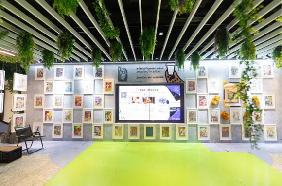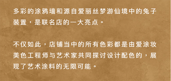 在聯名店鋪的墻面上,孩子們的作品與愛涂妝美色工程師共同打造