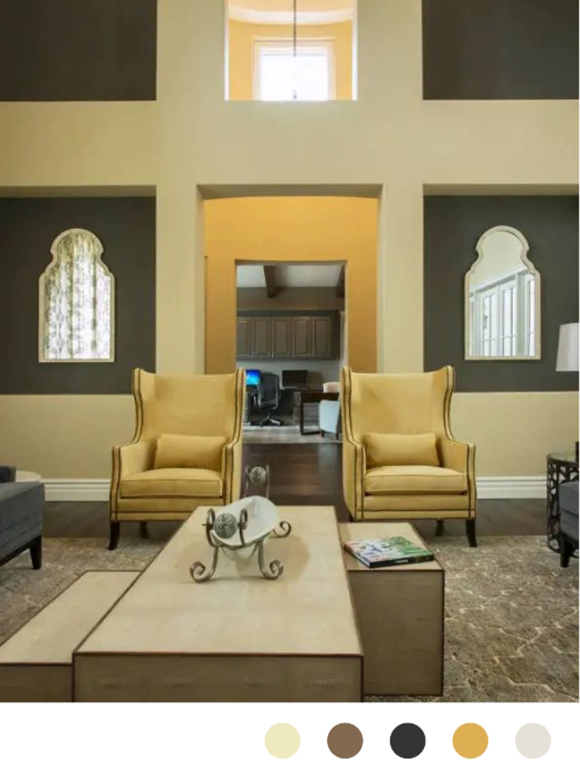 暖灰作為一種低飽和度的色彩,與云金龍相搭,能夠營造出溫馨而舒適的
