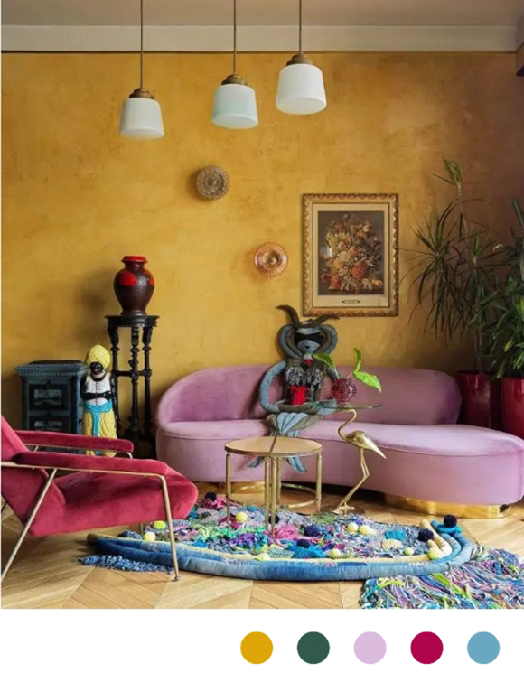 當用作暖灰色、深藍色、李子色或棕色的強調色時,它會將能量轉移到那